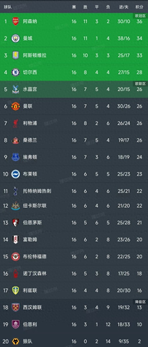 北京时间12月16日,随着红魔曼联4-4战平伯恩茅斯,英超第16轮结束所有比赛,最新积分榜如下!英超最新积分榜红魔曼联对