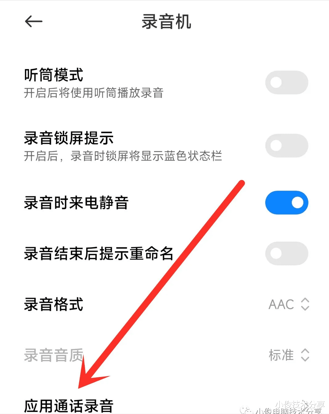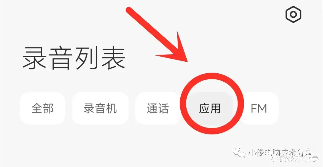 打开之后,点击右上角的齿轮按钮,进入设置选项,在录音机设置里面,可以看到在下面有一个【应用通话录音】