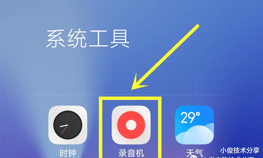 首先咱们打开手机,接着在桌面上找到【录音机】的app,接着把它打开