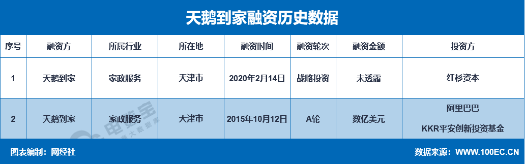 据网经社“电数宝”显示,天鹅到家累计融资超6亿美元,投资方包括阿里巴巴、KKR、平安创投等。2021年7月3日,天鹅到家向美国证券交易委员会(SEC)提交招股书,拟在纽约证券交易所上市,然而,公司的上市计划在之后并未完成,天鹅到家至今仍未能成功上市。