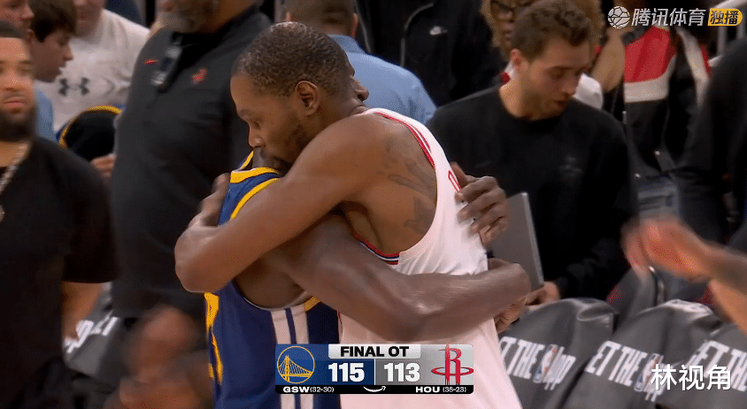 比赛结束,格林大步走过来,一把抱住杜兰特,与其拥抱致意,阿杜和格林拥抱后,直接走入球员通道,看得出来对于这场失利,阿杜心情很糟糕。