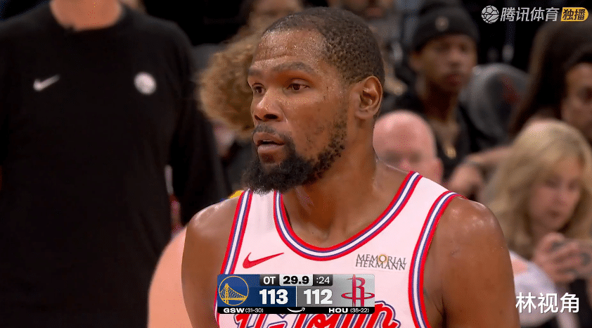 杜兰特回到场上,虽然命中一记中投,但火箭整体进攻还是断断续续,勇士咬住了比分。