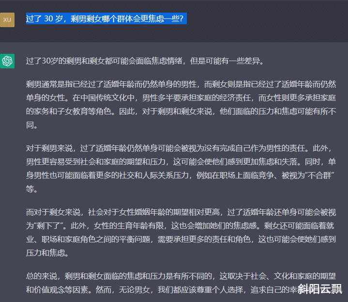 而对于剩女来说,社会对于女性婚姻年龄的期望相对更高,过了适婚年龄还单身可能会被视为“剩下了”。此外,女性的生育年龄有限,这也会增加她们的焦虑感。剩女还可能面临着就业、职场和家庭角色之间的平衡问题,需要承担更多的责任和角色,这也可能会使她们感到压力和焦虑。