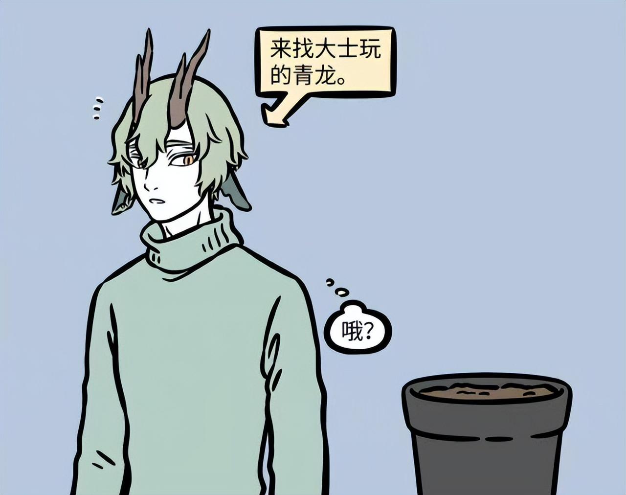 青龙:四相之一,掌管东方,属性为木,敖烈和龙女的二叔公,南天门小学校长,热爱园艺,能读懂植物的心思,头上的角很容易被当成树枝折断。像所有龙一样喜欢游泳,但由于在陆地太久了而有些生疏。爱给朱雀撒米吃。