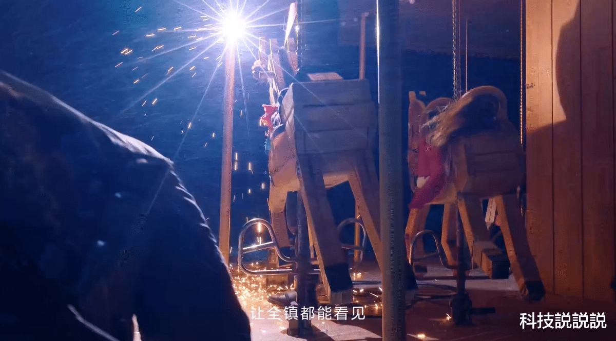 在《木马》这部新年短片中,不乏多个极具视觉张力的场景:主人公老马在零下几十度的冰天雪地里焊接木马支架,焊枪迸发的刺眼火星与漆黑天幕形成强烈反差,飞溅的钢屑在寒气中凝结为细碎光点。这类“明暗撕裂”的极端场景,对影像设备是极大考验——稍处理不当,火星便过曝成苍白一片,暗部细节也会尽失。