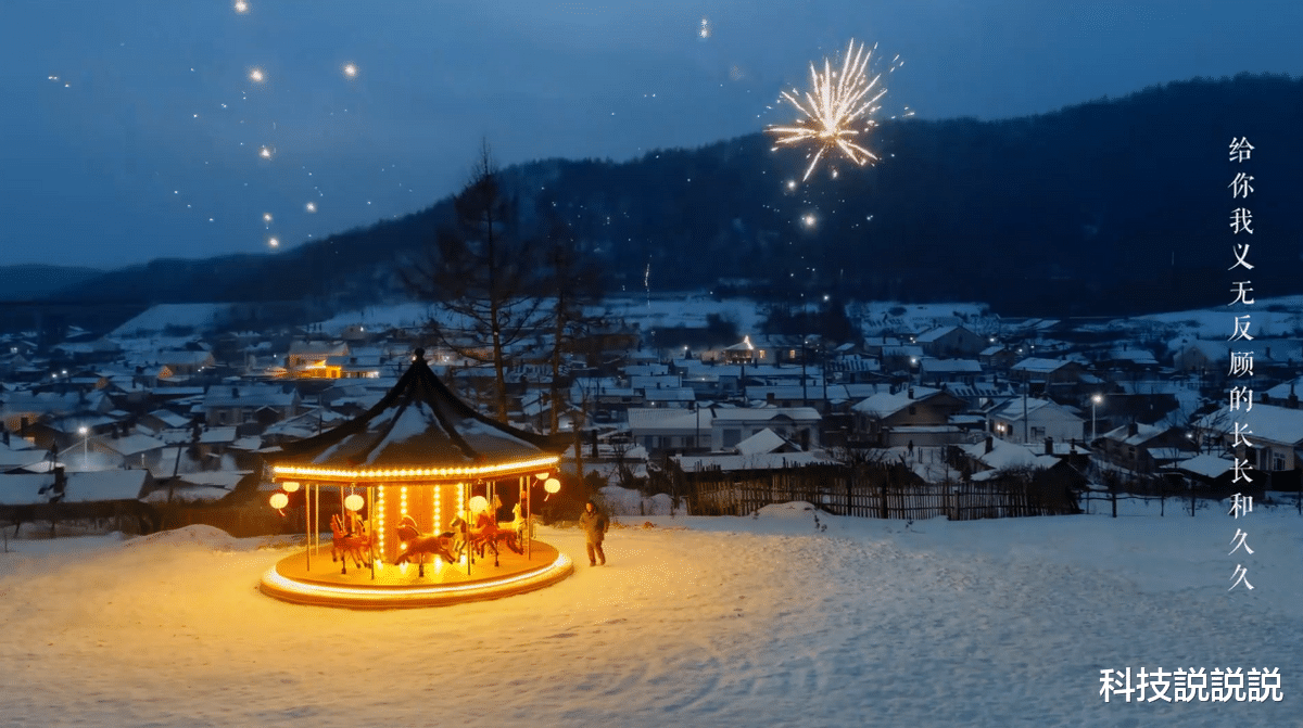 这一影像实力在短片中得到了充分展现:华为Mate 80 Pro Max精准复刻了春节特有的环境色调——屋顶悬挂的灯笼、木马上的红漆、暖黄色的室内光、村落中绽放的烟花,以及雪地的洁白与天际的湛蓝相互映衬。每一种色彩都真实如临其境,让“团圆”的暖意,仿佛从屏幕中自然流淌而出。