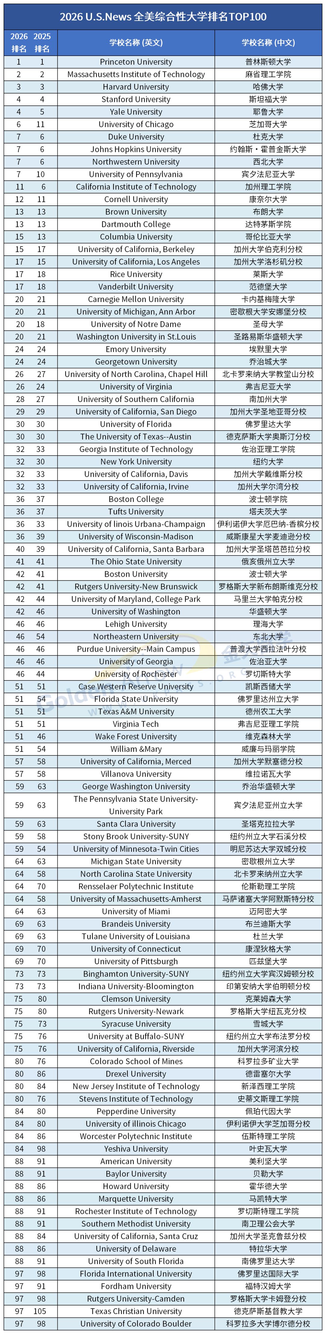 就在近日,2026U.S.News美国大学综合排名重磅出炉啦!