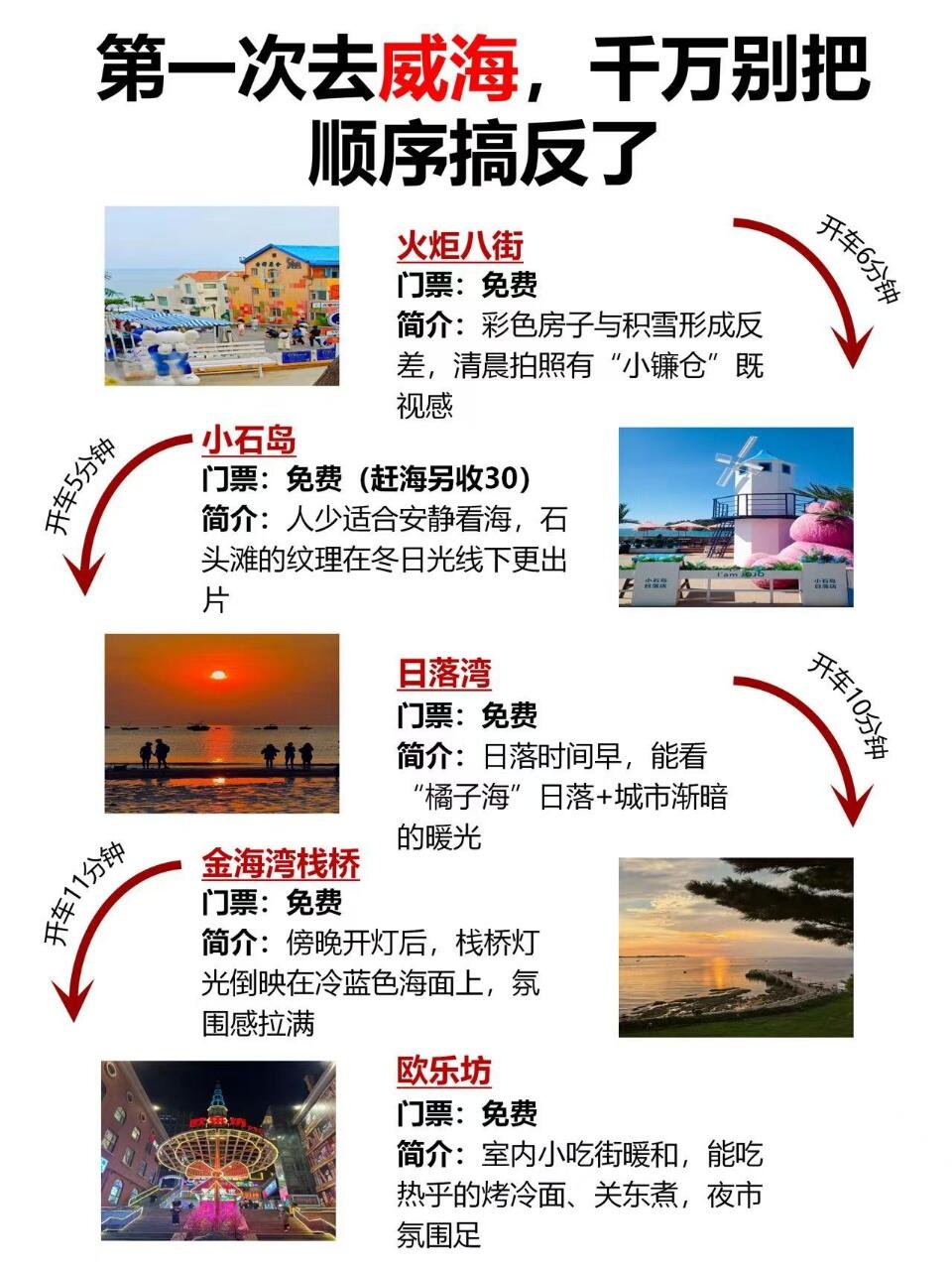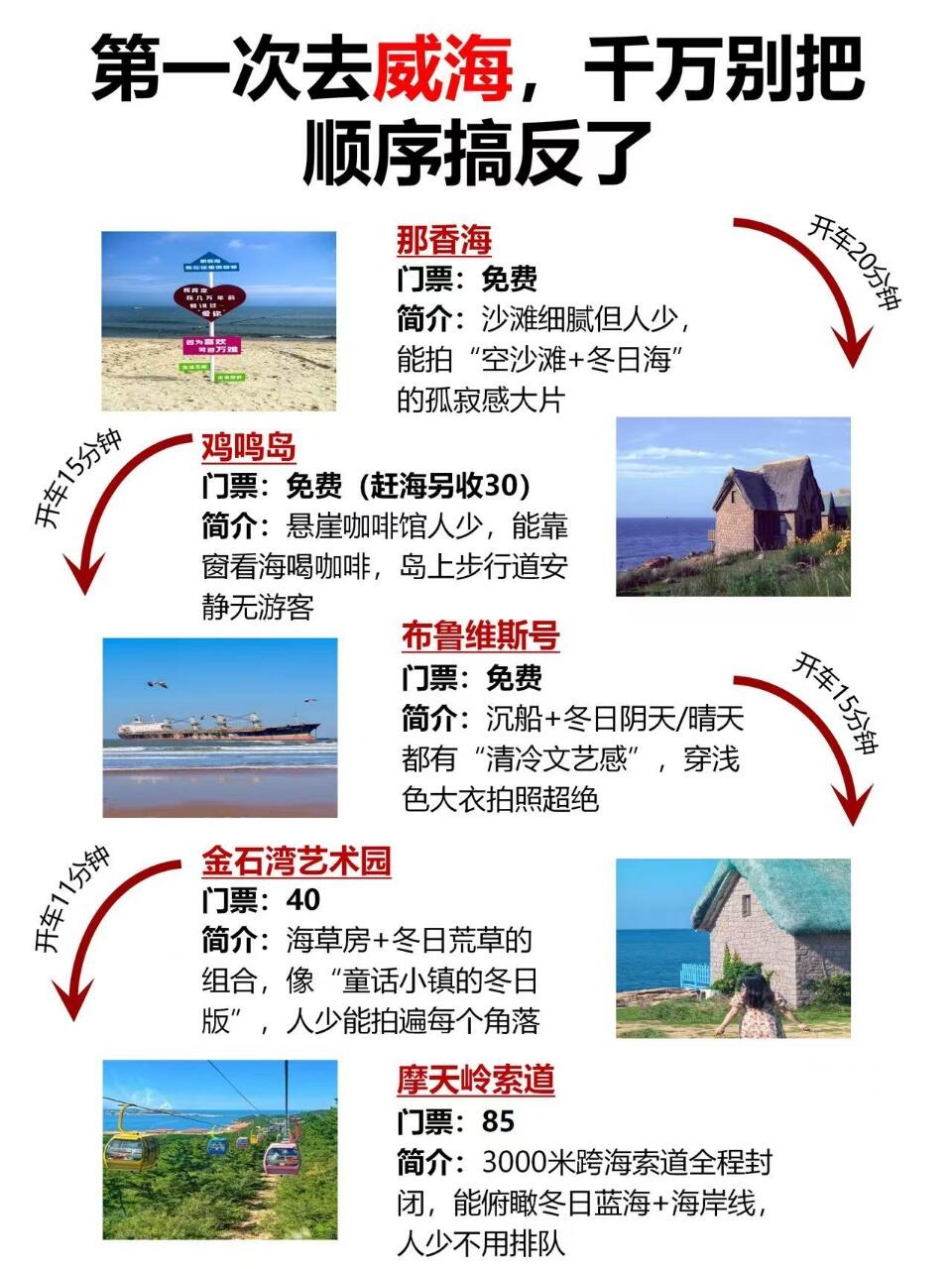 8:00 威海北站出发“环海雪国小火车”(班次少,提前12306抢窗边)→ 9:30 抵达金石湾艺术园(草房子戴雪门票半价20元)→ 11:00 布鲁维斯号冰层甲板拍“冰雪沉船”→ 12:30 巧克力渔家·冬季限定“海鲜打边炉”→ 返程