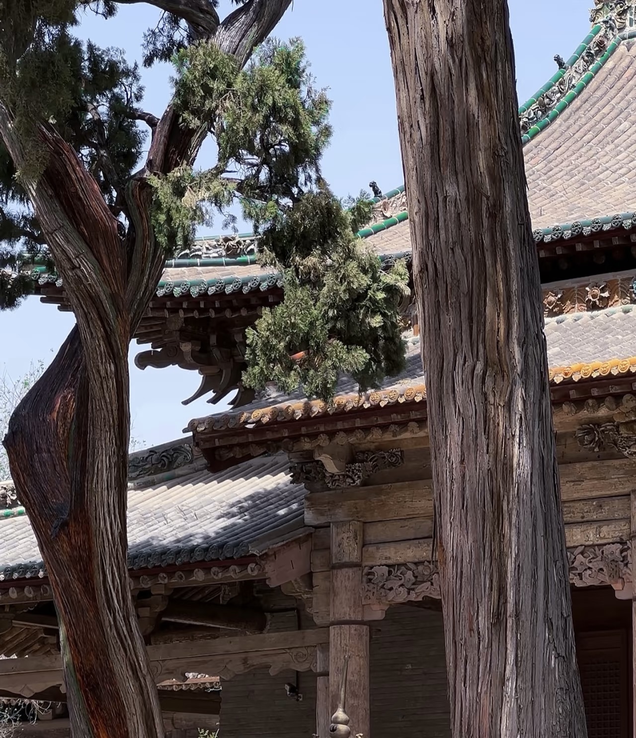 伸手触摸山门的青砖,指尖能感受到砖石的粗糙与厚重,那是六百年风雨留下的印记。阳光透过斗拱的缝隙,在青砖地上投下斑驳的光影,随着时间的推移缓缓移动,像是时光在地面上写下的诗句。几只麻雀在斗拱间跳跃嬉戏,叽叽喳喳的叫声打破了片刻的宁静,却又让这份安宁显得更加珍贵。没有导游的讲解,没有游客的喧哗,只有风吹过飞檐的轻响,和自己的脚步声在空旷的庭院中回荡,那一刻,仿佛整个世界都安静了下来,只剩下我与这座古老的山门,进行着一场跨越时空的对话。
