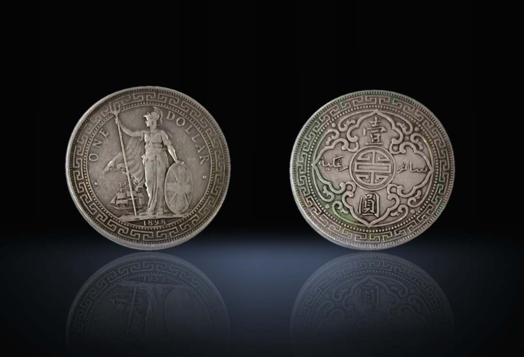 1898 年站洋币的设计极具特色,正面与背面分别承载着西方殖民符号与东方文化元素,形成鲜明的 “中西对话”。