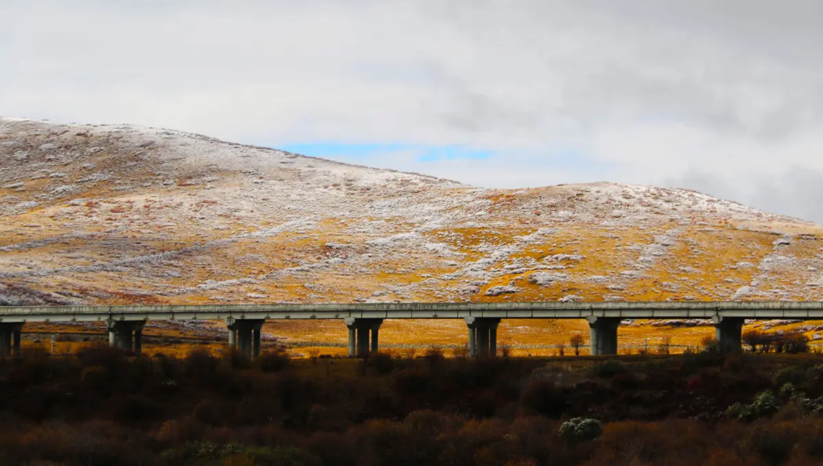 雪中红原俄么塘帐篷城正在修建久马高速红原段穿行红原大草原,雪山环绕牦牛家园,阿坝县高原牧场超级"牛"路