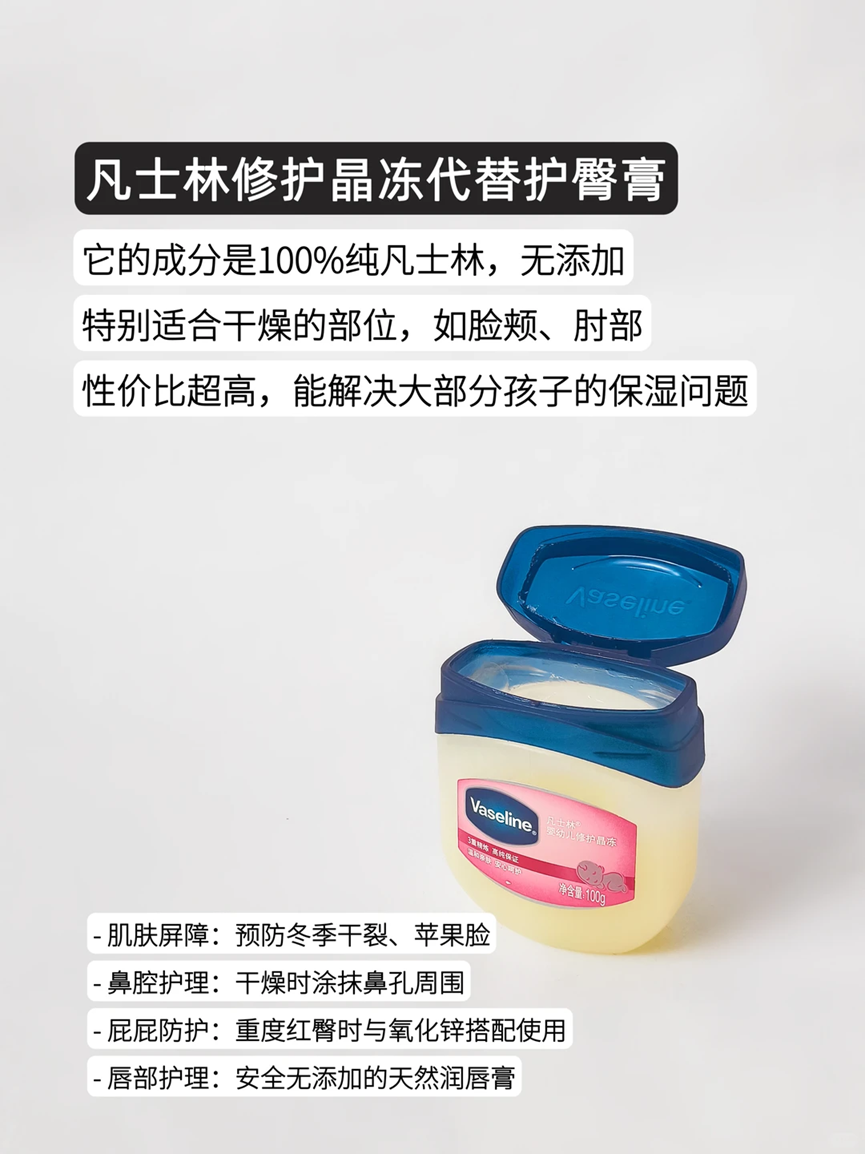 比如小朋友所使用的护臀膏,大家就可以直接使用凡士林修护晶冻,