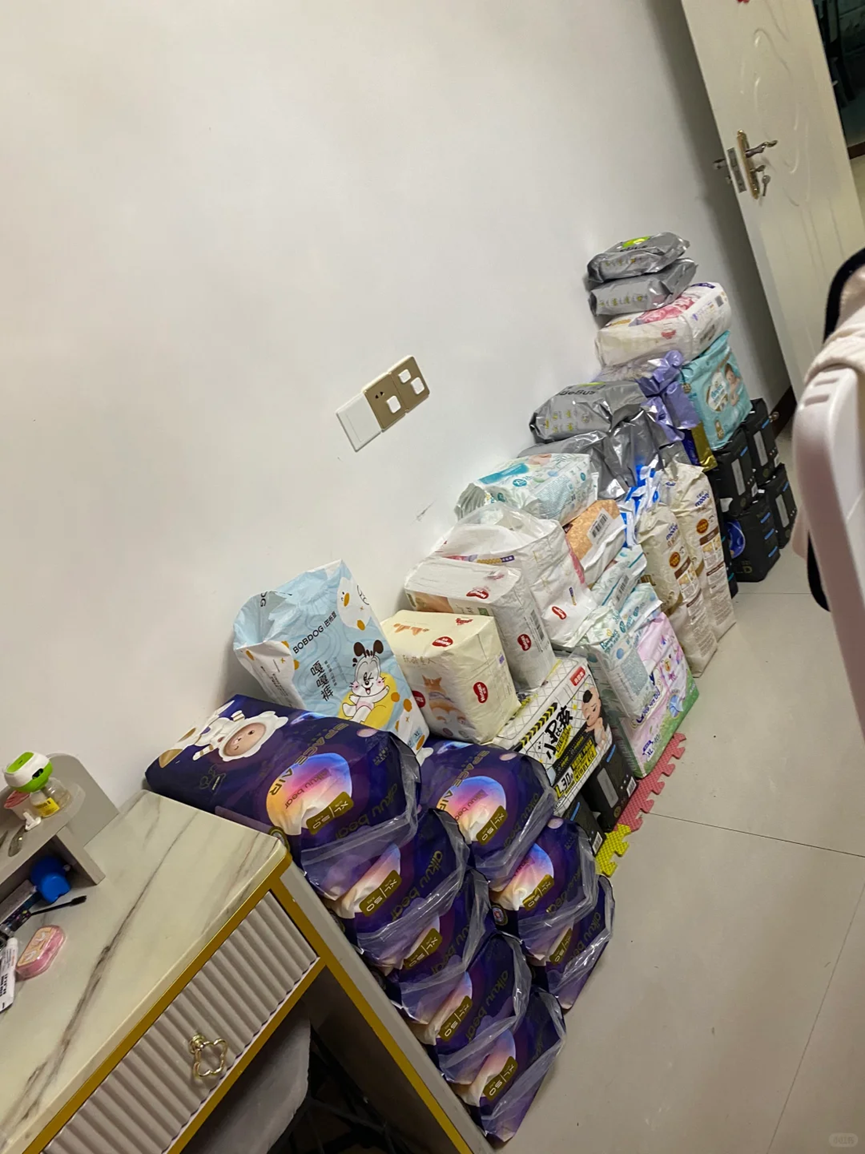 每次在给孩子买东西的时候,都想着孩子一定会用到,一定要多买一些,有备无患,家里面的云柔巾、湿巾、纸尿裤堆了好几大箱子。