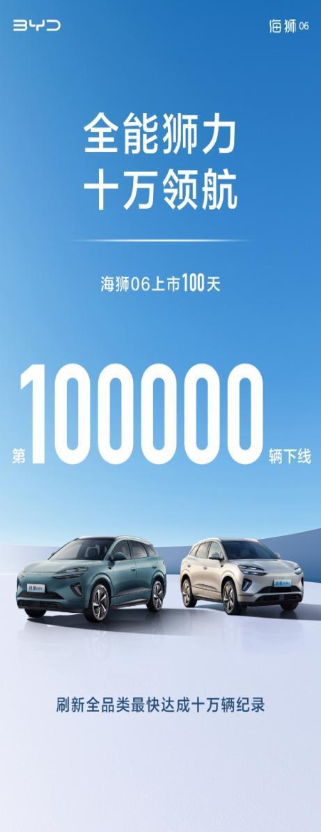 十万辆,是海狮06辉煌征程的第一个注脚,但绝非终点。作为比亚迪海洋网的核心战力,海狮06将继续承载更多消费者的信赖与期待破浪前行,以更具价值、更具魅力的新能源出行体验,持续推动中国智造向上突破,书写属于中国汽车的传奇新篇!