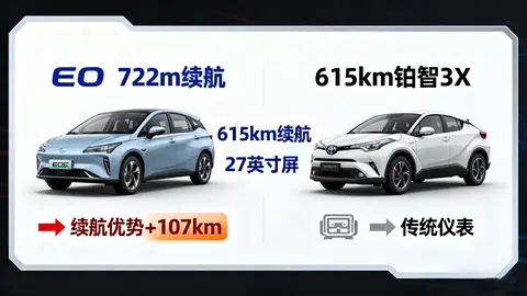 与同级别的丰田铂智3X相比,EO羿欧在续航里程上具有一定的优势,丰田铂智3X的最高续航里程为615公里,而EO羿欧的最高续航可达722公里。在配置方面,EO羿欧的27英寸超薄4K宽幕、“赛博之眼”前景显示功能以及高通骁龙8295芯片等配置,也显得更加科技感十足[__LINK_ICON]。不过,丰田铂智3X也有其自身的优势,比如丰田品牌在全球范围内拥有较高的知名度和良好的口碑,其车辆的质量和可靠性也备受认可。
