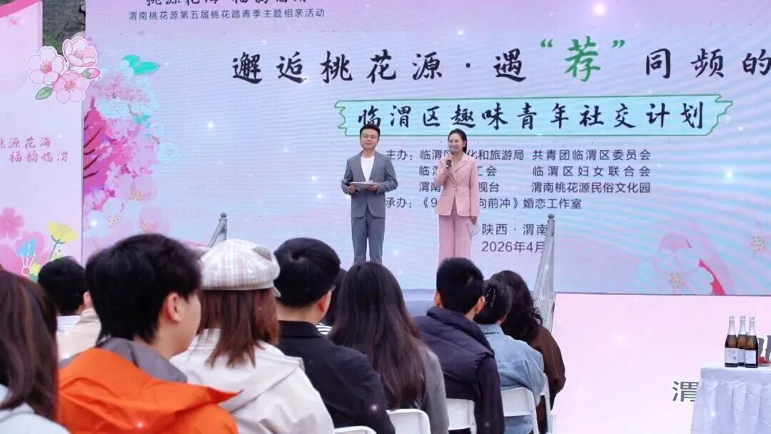 4月11日,渭南市临渭区第五届桃花踏青季主题相亲活动在桃花源景区正式拉开帷幕。本次“桃花寻春记”活动以“邂逅桃花源 遇‘荐’同频人”为主题,活动以花为媒、以情为线,在十里桃林间织就一场春日里的浪漫邂逅,不仅展示了临渭独特的生态之美与人文底蕴,也为青年群体搭建起沟通交流、相识相知的温暖平台。