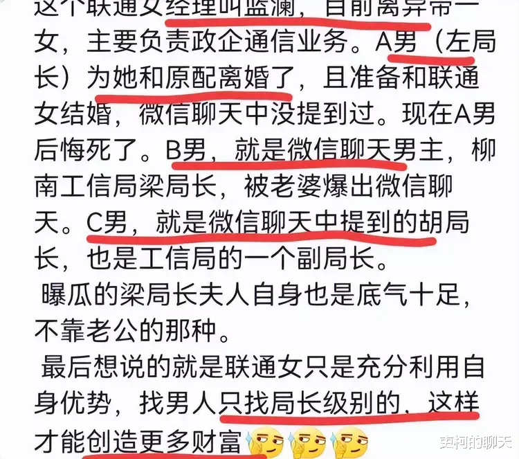 柳州的梁局长陷入桃色绯闻,他和小三蓝澜的聊天记录被老婆挖出来曝光到了网上,这一下引发了极高的网络热度。