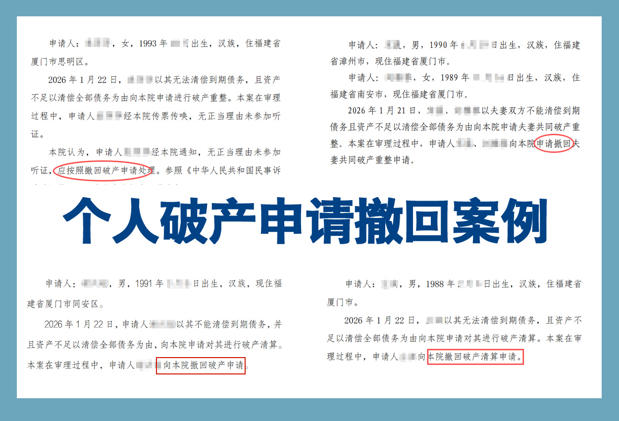 根据厦门破产信息平台披露的最新数据,2026年立案的11宗个人破产案件中,申请人主动撤回的数量已达4宗,撤回率高达36% 。换言之,每三个人申请个人破产,就有一人在立案后、受理前选择“打退堂鼓”。