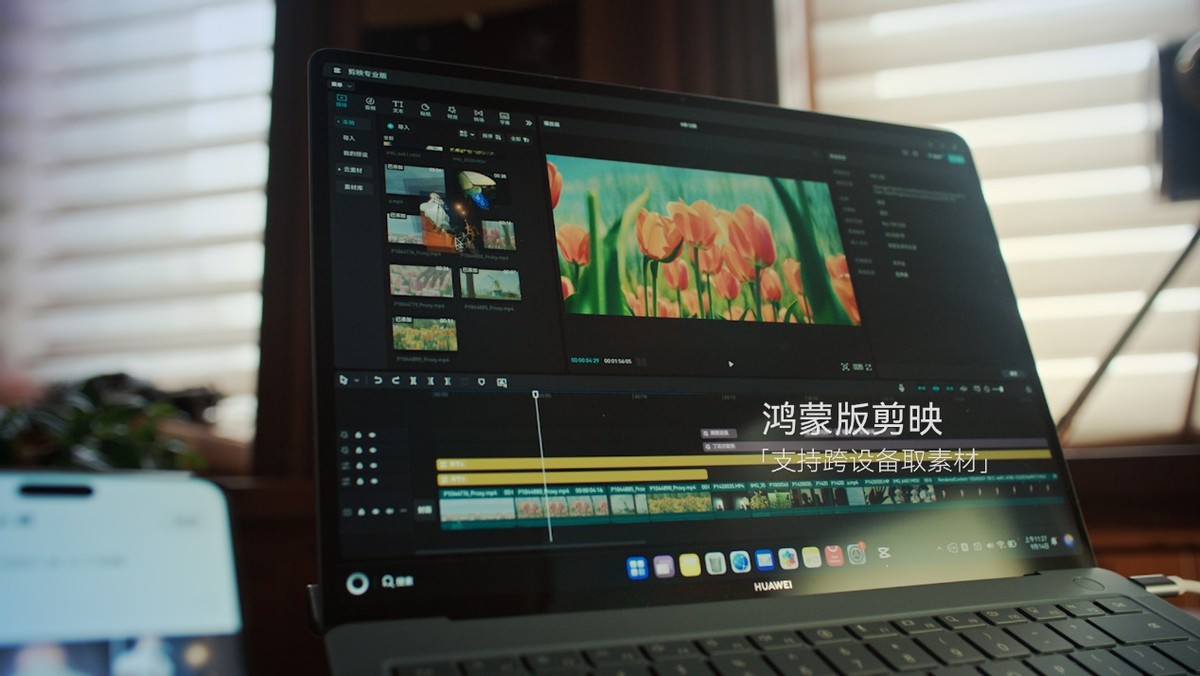 高效的剪辑效率也很重要,鸿蒙版剪映可以跨设备取素材——键鼠穿越功能,更是打破设备界限,坐在电脑前就能轻松调取手机里的素材,为自己的创作加速。此外鸿蒙版剪映还支持丰富的AI创作功能,如自动识别音频生成字幕、智能调色、AI生成贴纸,让专业剪辑变得更方便。