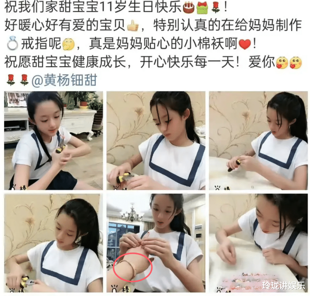 姓氏文化解.码:女儿姓名“黄杨钿甜”中父姓“杨”置于母姓“黄”之后,暗示家族话语权可能向母系倾斜(对比谢霆锋儿子“谢振轩”冠父姓)。