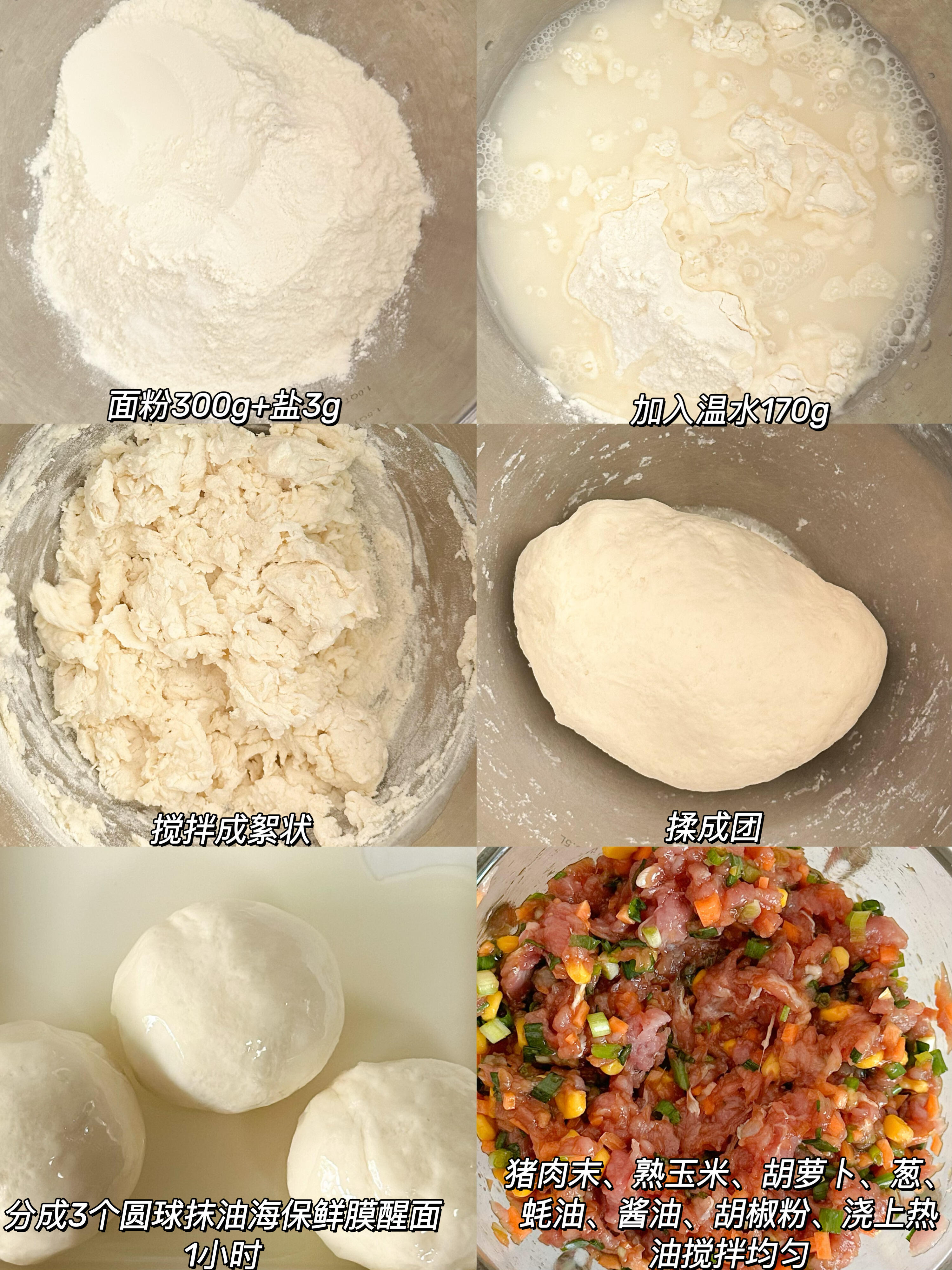 • 猪肉末、熟玉米粒、胡萝卜丁、葱花(这些是馅料的主要成分,可以根据个人口味调整)