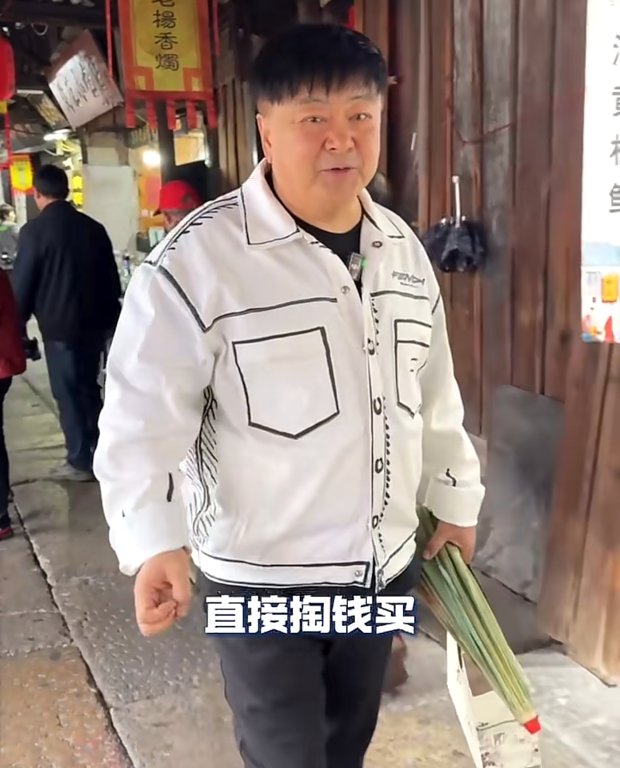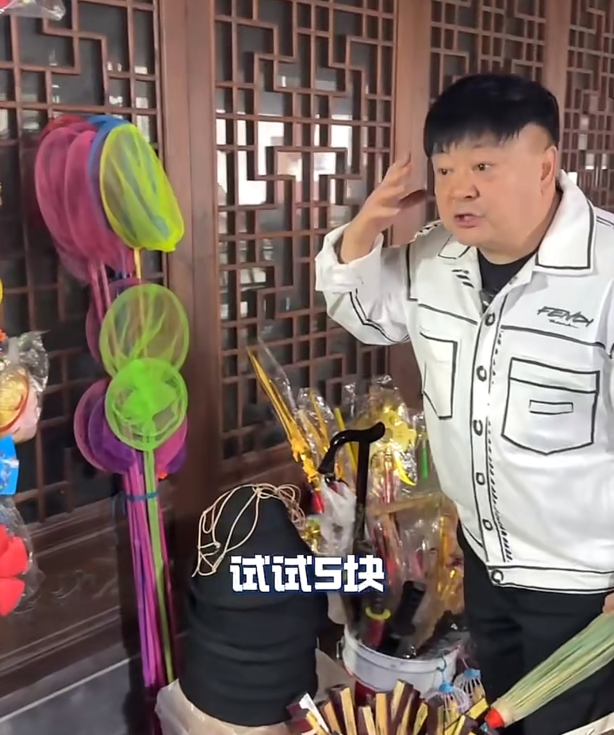 事件经过是这样的,洪剑涛在古镇上闲逛时,看到一个老太太在街边摆了一个小摊儿,卖一些小东西,各种各样的小玩具和文创品。