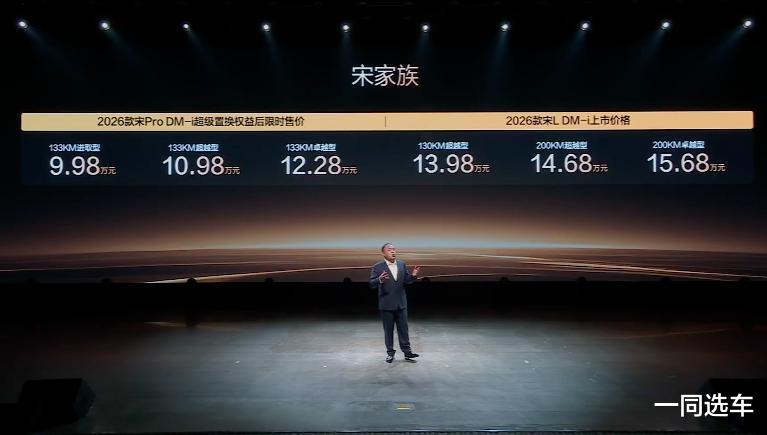 10月23日,比亚迪2026款宋家族正式上市。其中,2026款宋L DM-i售价:13.98万元-15.68万元;