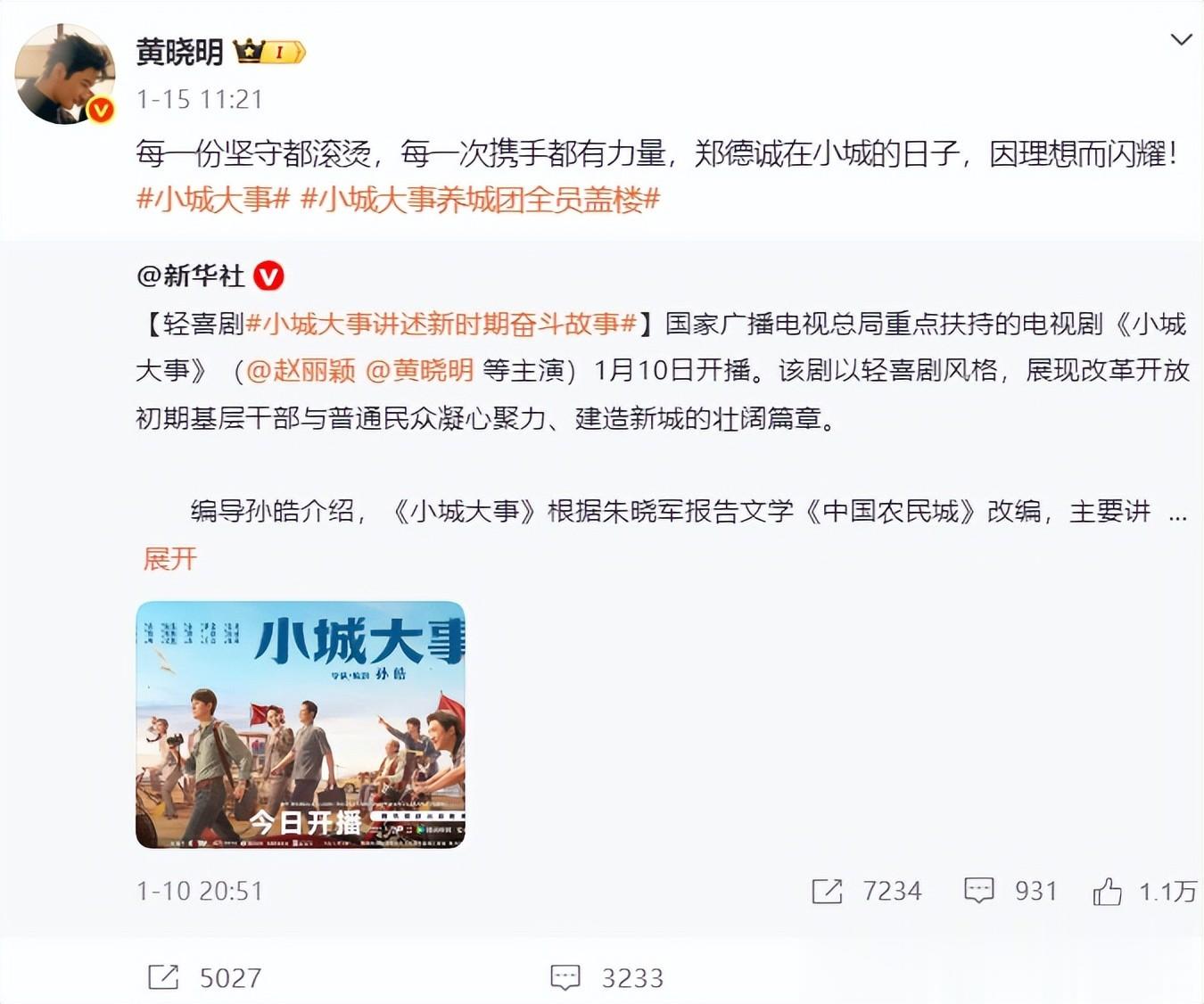 并且在1月15日的时候,他还在自己的社交媒体账号上发了一条动态,动态中是关于新剧的,看得出来,如今的晓明哥,依旧活跃在圈内一线。