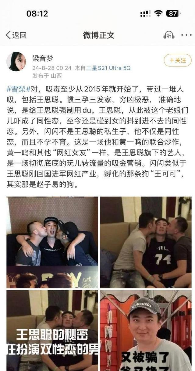 正当雪梨的风波在网络上愈演愈烈时,另一位知名人物——王思聪,也被卷入了这场风波。 王思聪的私人照片被曝光,这些照片不仅展示了他的生活,还暗示了他与雪梨之间可能存在的某种联系。 更让人惊讶的是,有爆料者称王思聪的性取向和个人生活有着不为人知的一面。