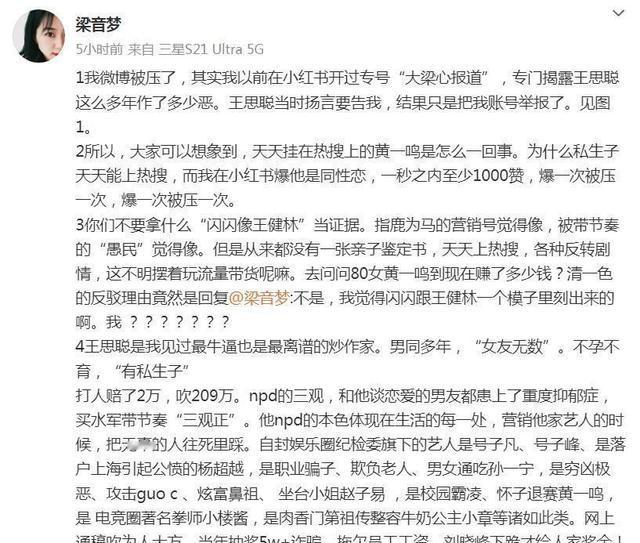 在这个故事中,我们看到了多个事件的交织,每个事件都引发了网友们的热烈讨论。 雪梨的吸毒指控、王思聪的私人生活曝光,以及乔任梁的往事被提及,每一件事都在网络上引起了巨大的讨论。 这些事件的真实性如何,我们无从得知,但它们无疑给当事人带来了不小的影响。