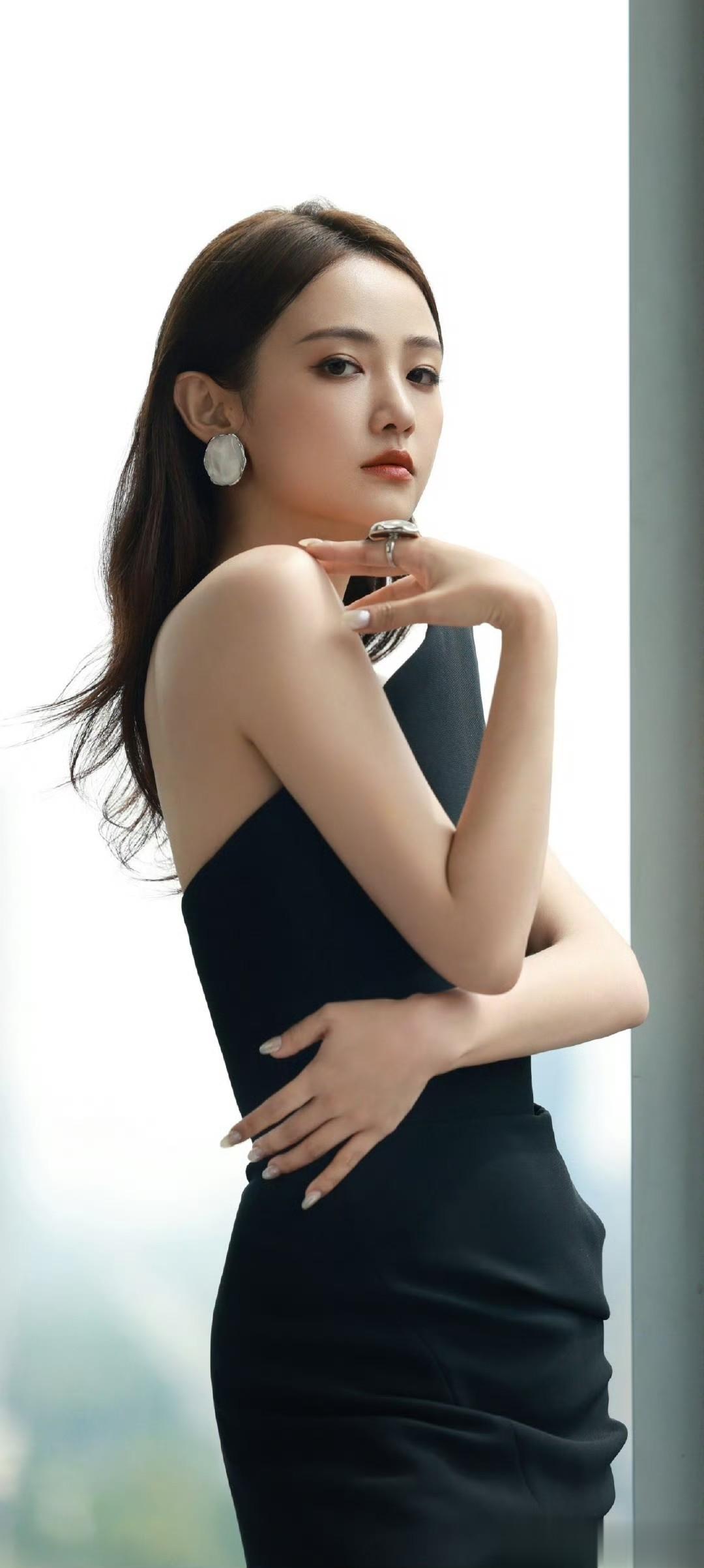 吴佳怡这一袭黑色长裙的穿搭,直接美出新高度,简直是壁纸级别的存在!