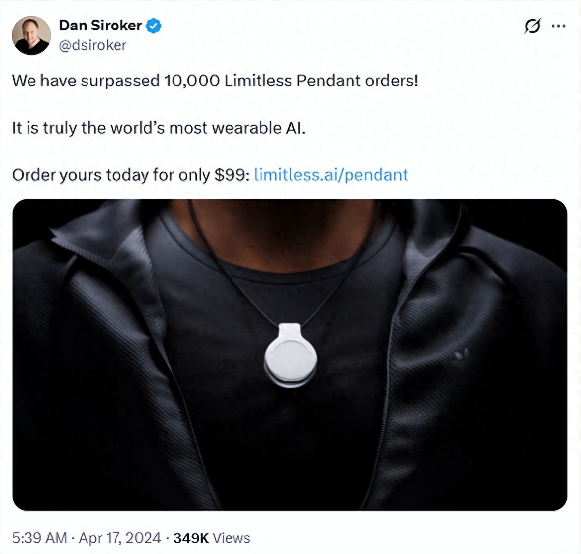 在这款个人知识工具取得初步成功后,Rewind 正式更名为 Limitless,公司战略也从纯软件转向软硬一体,推出全天候记忆系统 Pendant。这是一款带有麦克风的可穿戴设备,既可以作为项链也可以别在衣领处,能持续录制和转录用户对话,售价 99 美元。