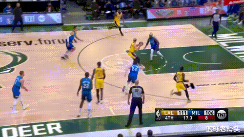 此役,湖人全队的手感太热了,屡屡命中三分球。而雄鹿则打转换快攻紧咬比分,就在一次转换进攻中,米德尔顿持球快攻,从詹姆斯裆部击地传给空切的霍勒迪,助攻队友上篮得分,这让詹姆斯脸面多少有些挂不住,36岁的老汉成为背景帝。