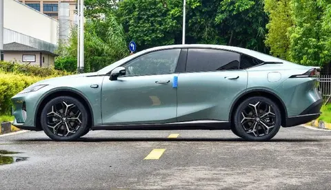 车身侧面造型简洁,贯穿式腰线从车头延伸到车尾。4875mm的车身长度搭配2900mm的轴距,让车身更加协调,同时呈现出低趴的轿跑姿态。车辆还配备了隐藏式门把手和无边框车门,进一步提升运动气息,也降低了整车风阻系数。车辆尾部采用贯穿式尾灯设计,中间配备了可发光的深蓝logo标识。尾灯还集成了辅助驾驶小蓝灯设置,进一步提升车辆辨识度。车辆还配备了可自动升降的电动尾翼,当速度达到90km以上时自动展开,提升整车性能和表现。外观颜色方面,车辆提供了星矿黑、星云青、星辰蓝、月岩灰、彗星白等多种选择,满足大部分消费者的审美需求。