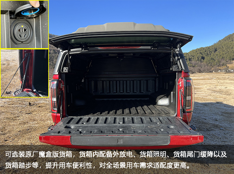 作为一台皮卡,货箱是区别于其他越野车的核心优势,而全新江铃大道敢探者的货箱更是具备多用途属性。原厂配备缓降杆、上车踏步、货箱照明和货箱放电等多项配置,极大提升了其货箱在使用过程中的便利性,再结合强悍的越野能力,全新江铃大道敢探者非常适合作为越野探险车队保障车。