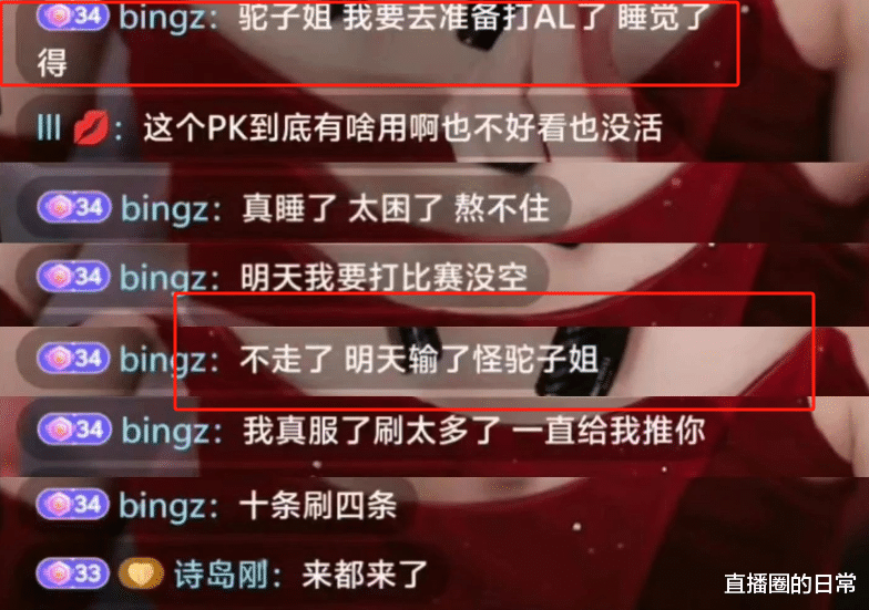 近日深夜,bin点进了还在开播的骆歆直播间。要说这bin选手,在赛场上那可是“神bin天降”,霸气侧漏,可到了骆歆的直播间,嘿,完全被拿捏得死死的。尽管他明知第二天还要和AL战队打MSI比赛,也发弹幕说了好几次“我要去睡觉了,太晚了”,但终究还是抵不过直播间里骆歆的甜言蜜语。这一来二去的,bin选手直接表态了:“不走了,明天输了怪驼子姐!”说完,还给驼子姐刷了不少礼物,那叫一个豪爽!