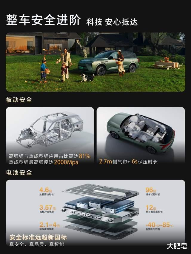 全新蓝山智能进阶版延续了长城汽车"过度投入"的传统,坚信“安全没有刚好,只有不够”,并构筑了一套全维安全守护体系。不但有81%采用了高强钢与热成型钢,关键部位热成型钢强度达到2000兆帕的“硬身板”,还有通过远超国标测试的电池安全保证,其中,模拟碰撞测试的加速度是国标的2倍;盐雾腐蚀测试的时长将近国标的5倍;热扩散观察时长是国标的12倍;浸水时长达国标的96倍。