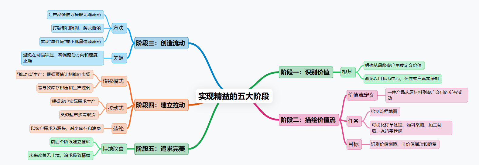 它要求你从识别客户的真价值出发,看清你的价值流全貌,然后努力让它流动起来,再通过拉动系统让生产变得精准,并在这条路上永不停步地追求更好。