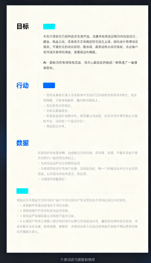 这样分点说明,每个部分的逻辑都很清晰,领导能跟着你的思路走,还能快速抓住关键信息。如果需要补充细节,就在每个分点里简单展开,不用额外堆砌无关内容。