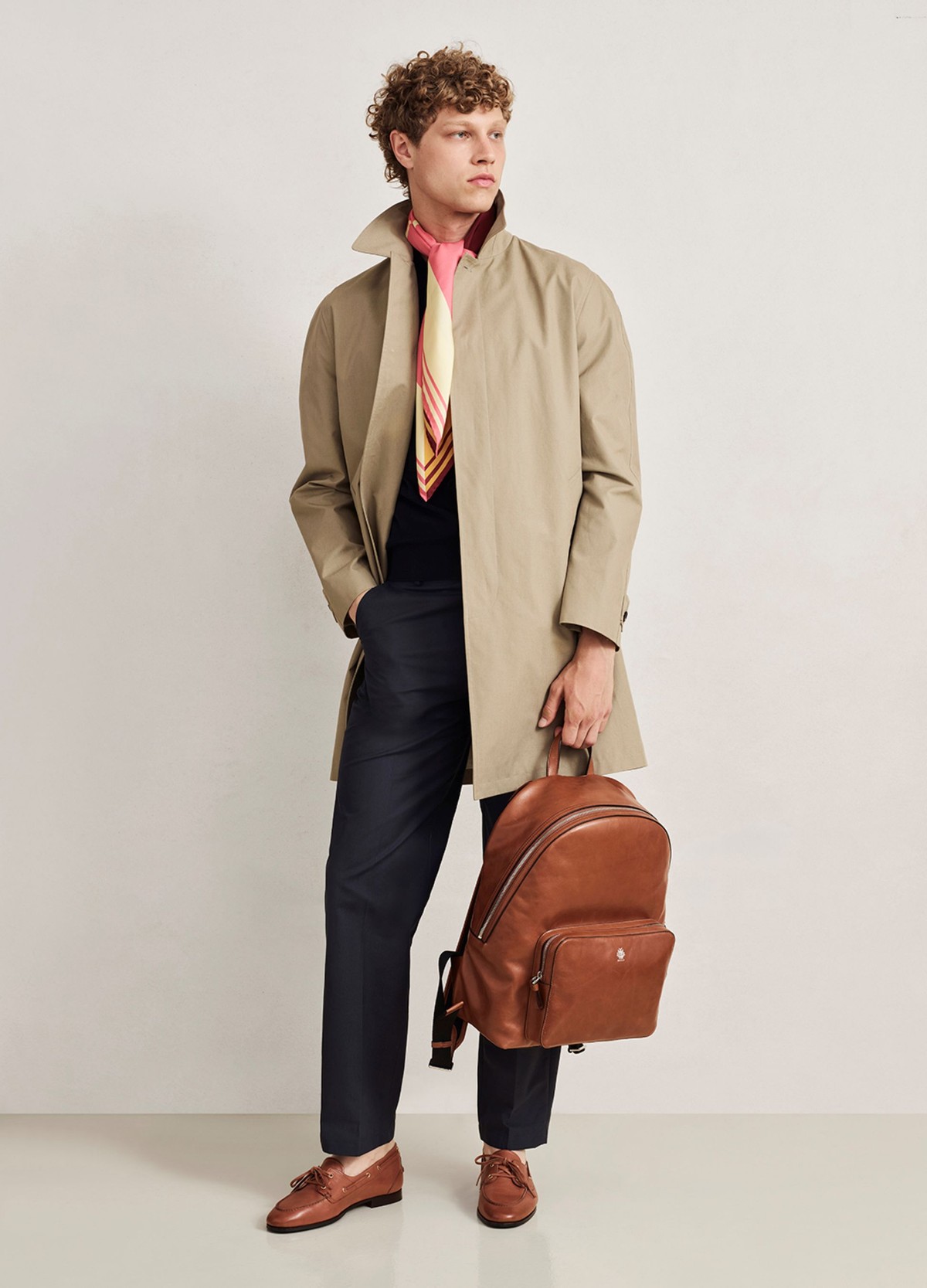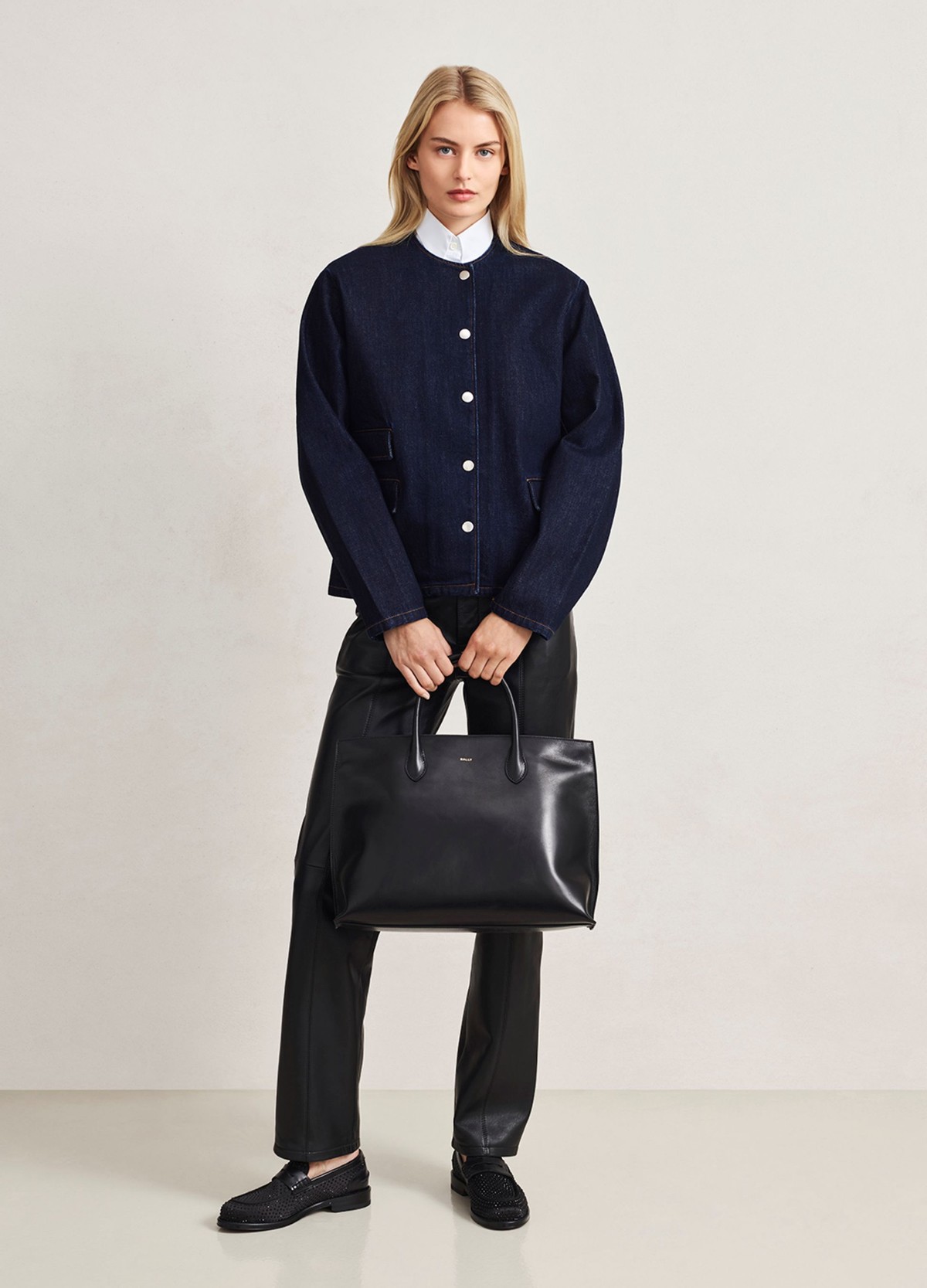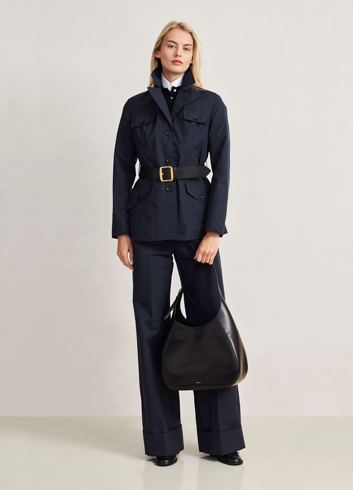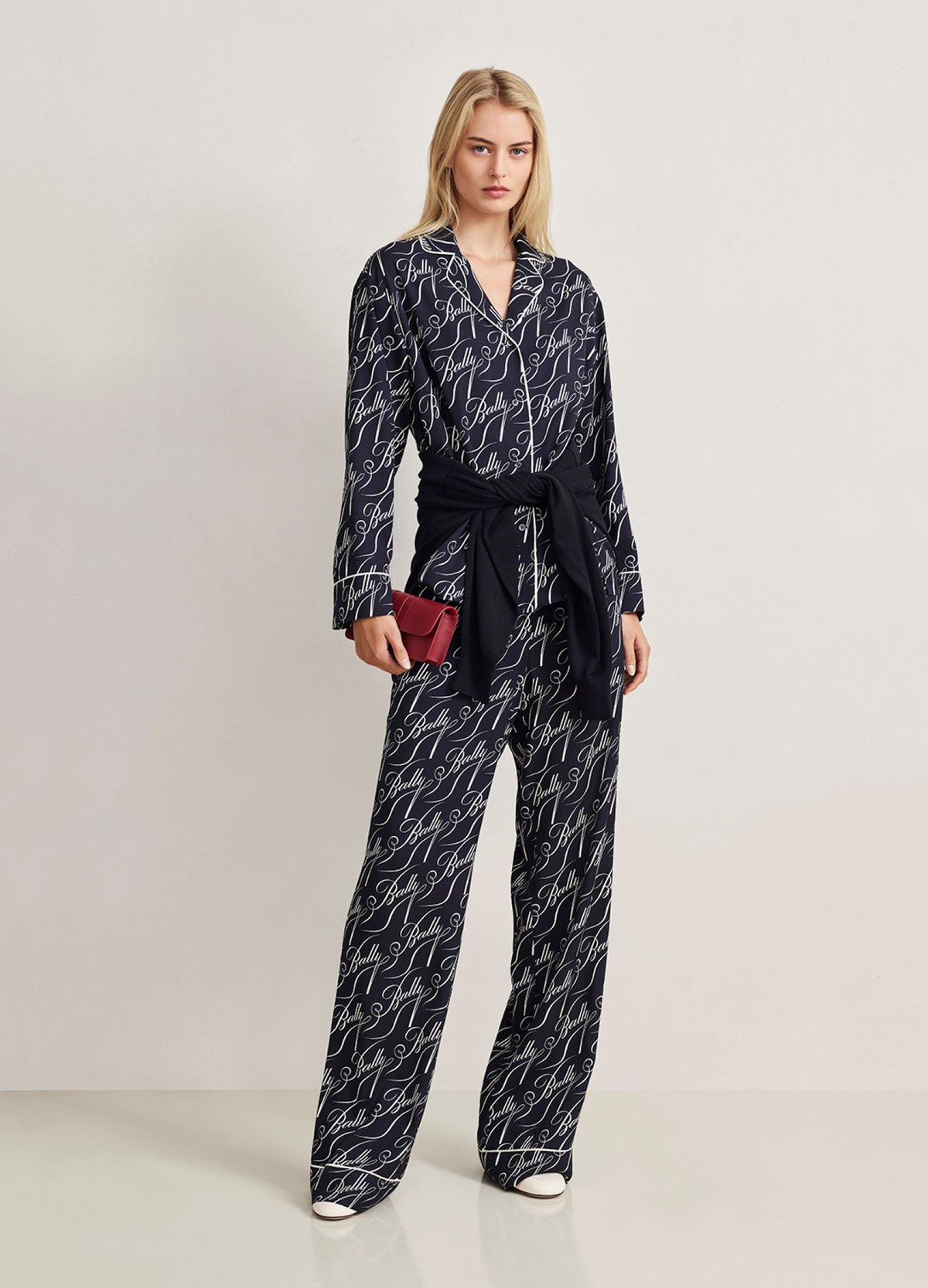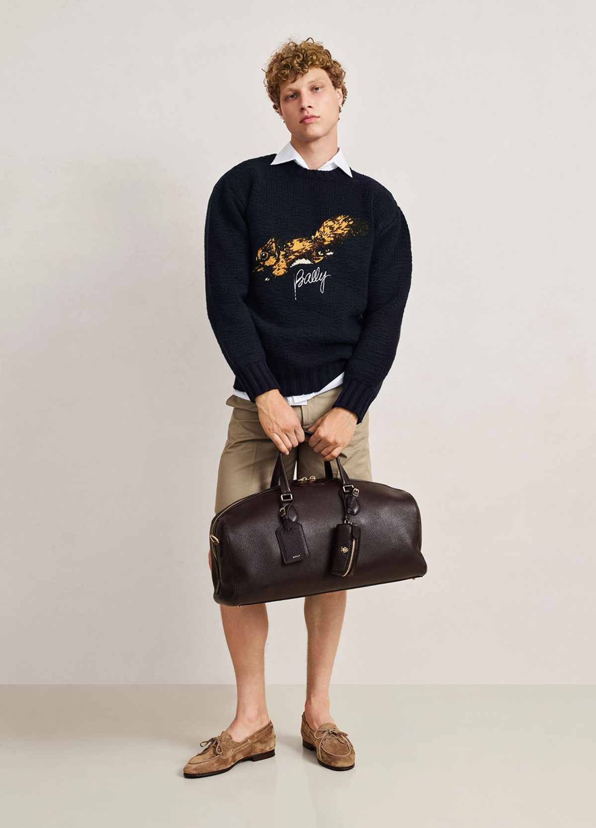 以奶油白、深海军蓝、黑色与暖棕色等经典色调为基础,彰显该系列的静谧格调。巧妙融合品牌典藏元素,如Bally Sourire 花体字母徽标印花,延续品牌经典传承。