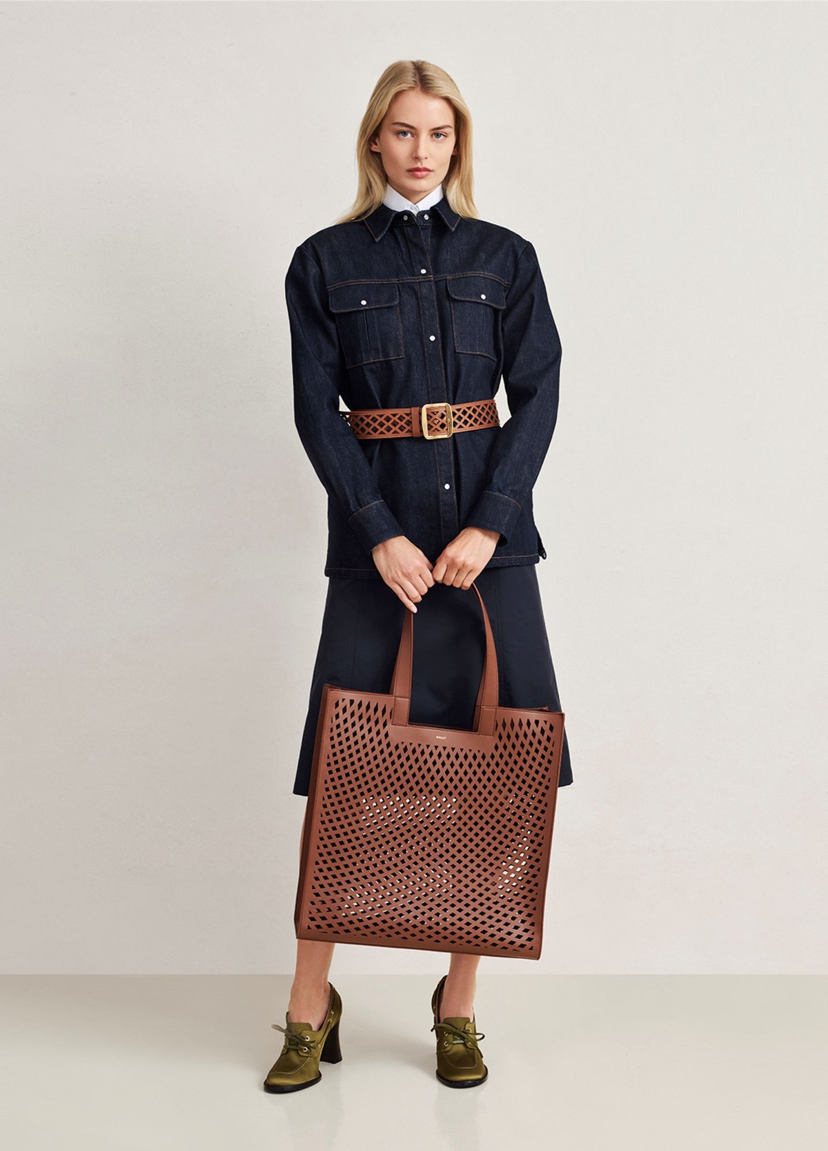 该系列贯穿精湛工艺技术,彰显 Bally 追求卓越的品牌精神。激光切割皮革、半宝石嵌饰的针织衫以及精心打造的各处细节,皆为Bally 2026度假系列赋予了丰富质感与鲜明视觉风格。