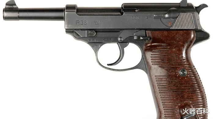 瓦尔特P38自动手枪,是1938年为了解决卢格P08自动手枪产能不足而设计生产的。瓦尔特P38自动手枪主要是配发给德军的下级军官、士官等人员使用,基本就是接P08的班。该枪口径9mm,发射9mm巴拉贝鲁姆弹,全枪长216mm,枪管长125mm,弹匣容弹量8发。其采用枪管短后坐自动原理,卡铁摆动式闭锁方式。