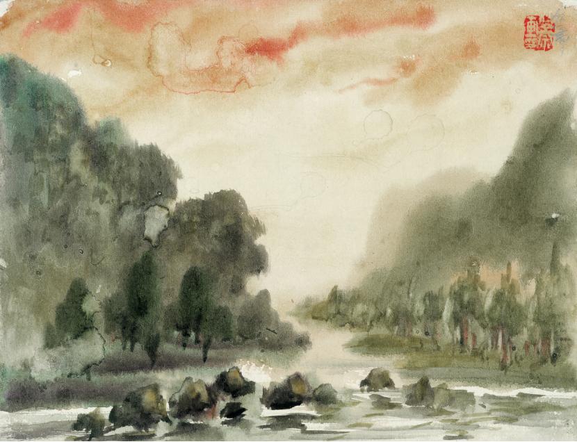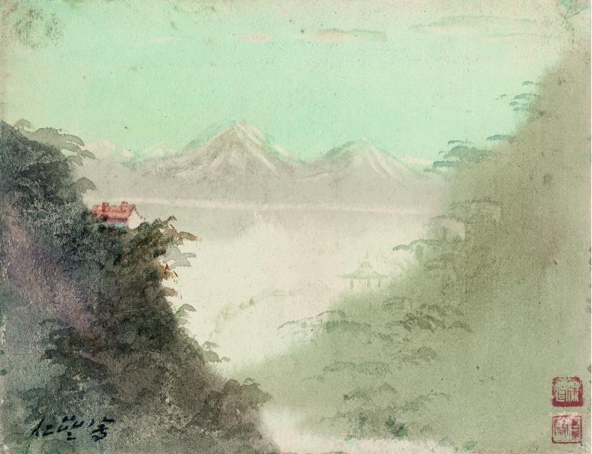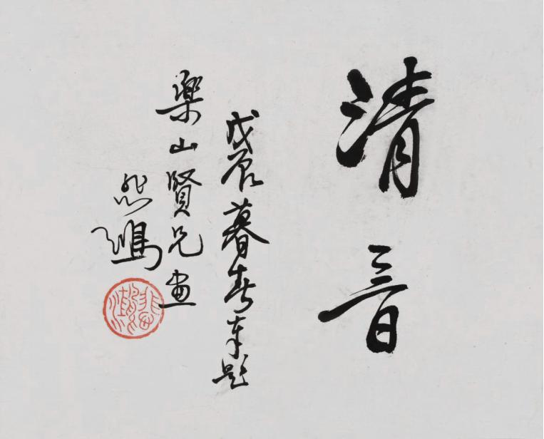 1928年徐悲鸿老师为徐风作品题词:“清音。戊辰暮春奉题乐山贤兄画。