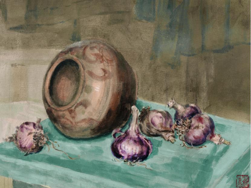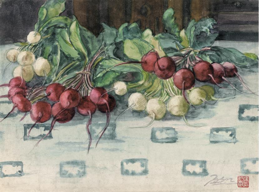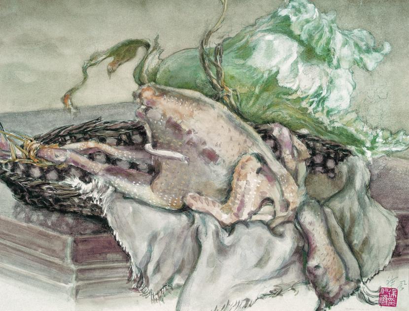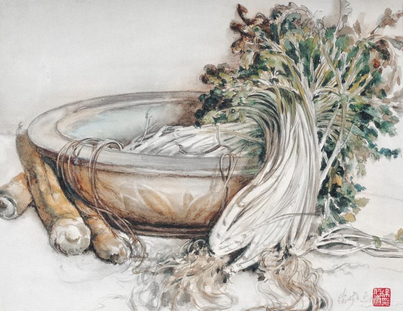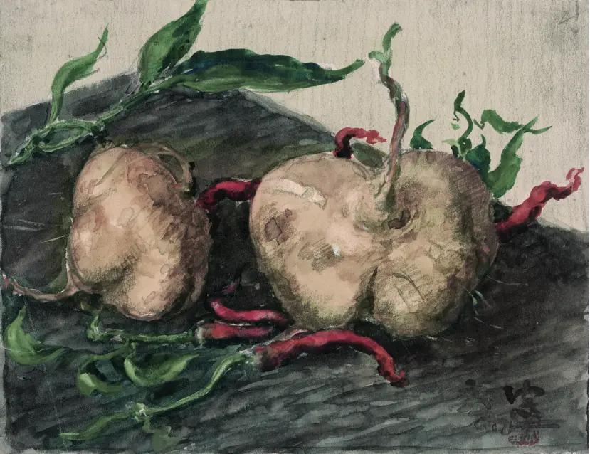 色彩感也是徐风的擅长。其水彩画用笔灵动轻快,设色柔和淡雅,於光色变化中营造出清新自然的意境和情趣。又能将中国水墨画的技法,和谐地运用到水彩画之中,使作品增添了东方情韵。早期作品,泼辣新颖;中期作品,谨严沉着;晚期作品则娴熟老到,涉笔成趣,大有“从心所欲不逾矩”的气概。特别是芹菜画法的简洁,自然留白成茎,根鬚线条的运用等,令人叫绝,让人不由联想起他1973年的素描《鹹黄