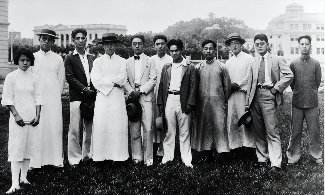 右起:张金生 蒋仁 佚名 顾了然 窦重光 高国梁 徐悲鸿 张安治 蔡任达 徐乐山(徐风) 郑阿梅