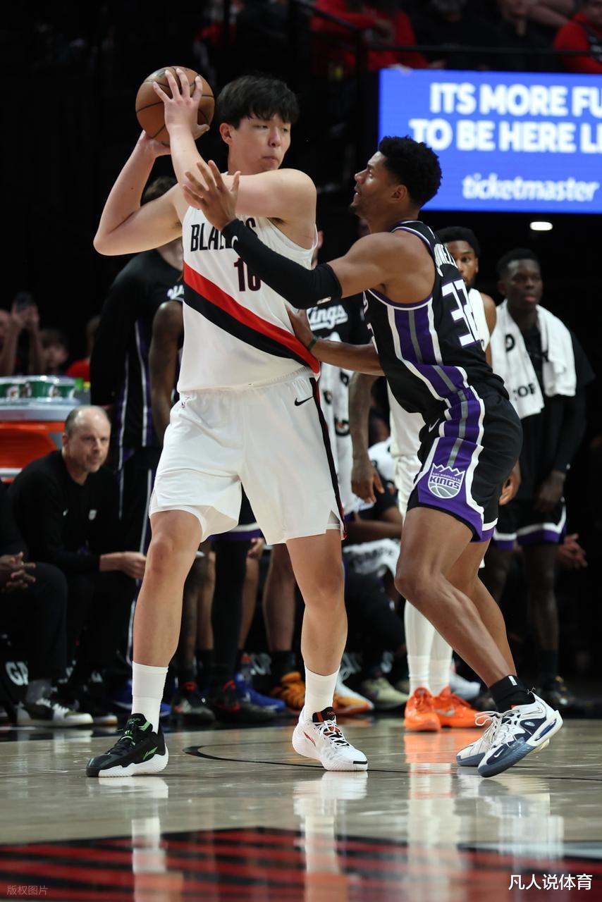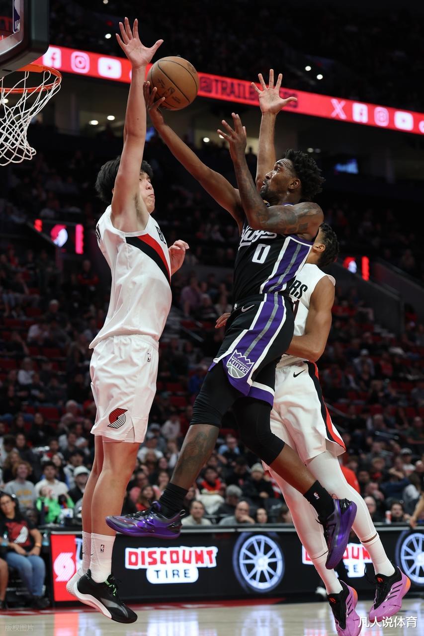 第二节局势彻底倒向国王。在德罗赞与基根・穆雷的带动下,国王打出多波反击高潮,一度将分差扩大到 6 分。重新登场的杨瀚森仍未找到节奏,两次近距离抛射均告偏出,失误与犯规数分别攀升至 2 次和 3 次。尽管他送出一记精彩的切球封盖,将拉文的突破上篮拒之门外,但未能改变球队单节净负 12 分的颓势。上半场结束,开拓者 58-64 落后,杨瀚森 8 分 14 秒的出场时间里 2 投 0 中,仅靠罚球得到 2 分,这样的表现似乎让首战后的自责情绪再度蔓延。