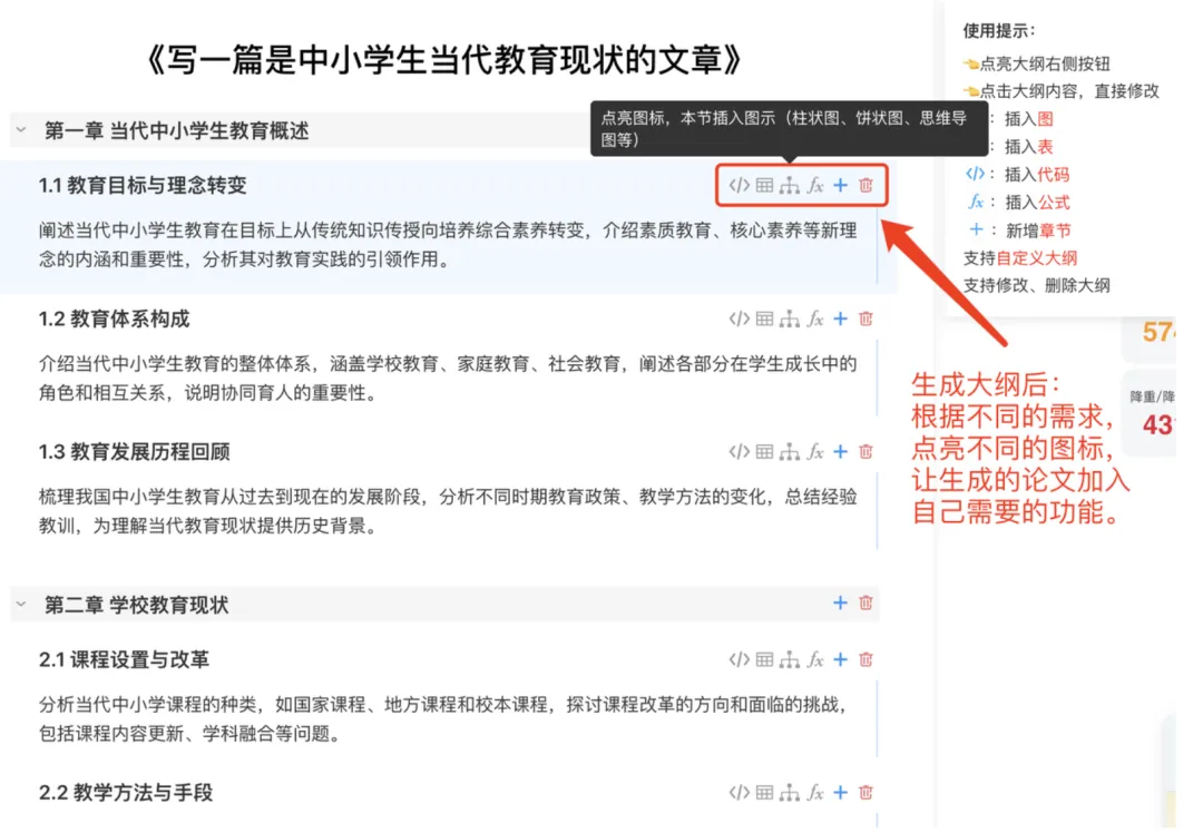 易笔AI支持在AI论文生成阶段同步点亮图标,自动插入数据表、可视化图表、LaTeX公式以及代码,一键生成技术路线图。论文的可行性视觉呈现,显著简化了排版与绘图的繁琐流程,增加学术写作说服力,通过审核,很多同学表示十分省力,只需在生成大纲时点亮相应的图标,系统就会在正确的位置自动嵌入这些图、表代码或公式元素,格式规范、排版专业,确保生成的论文符合理工科及管理学科的严苛要求。