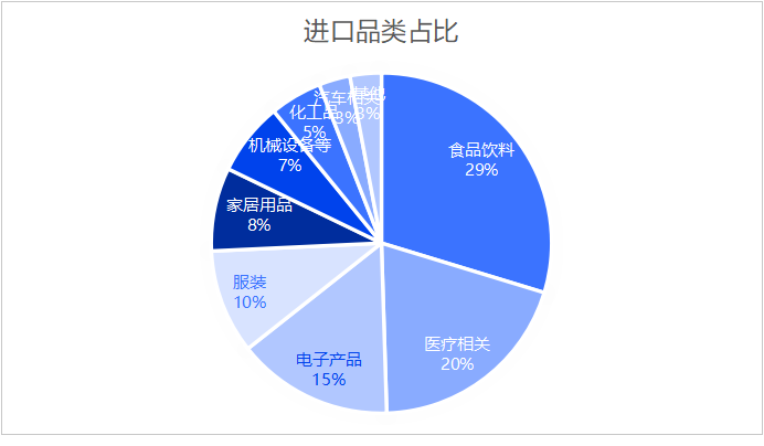2024年进口额约138亿美元。进口依赖度较高,民生类(食品+医药)独占50%。
