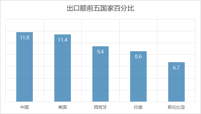 中国继续保持第一大供应国,品类以机械电子为主;美国居次,品类集中在农产品与药品。