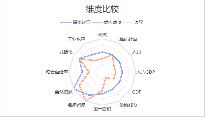 将各项数据汇总,粗略做了一个雷达图,我们能够对委内瑞拉有一个直观的认知。